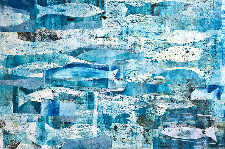 exposició SABORS a Abartium. 7 gravats 56X38 Marc 70×50 Tècnica: Monotípia, Transfarència i collage